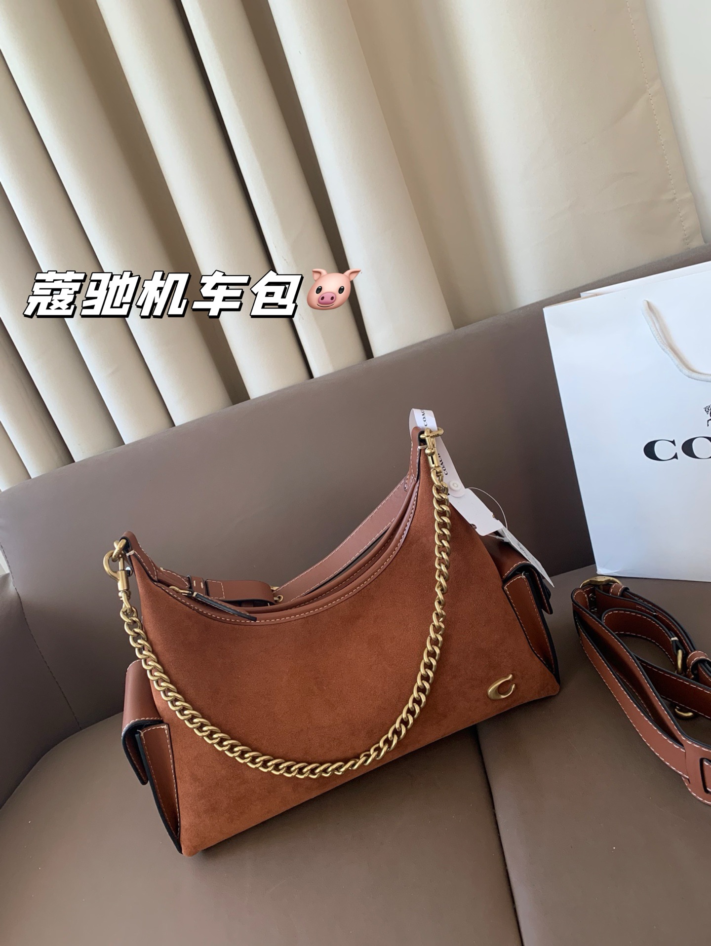 קוש מרכבת בייקר מנוסחת בסגנון מעור חום עם שרשרת זהב