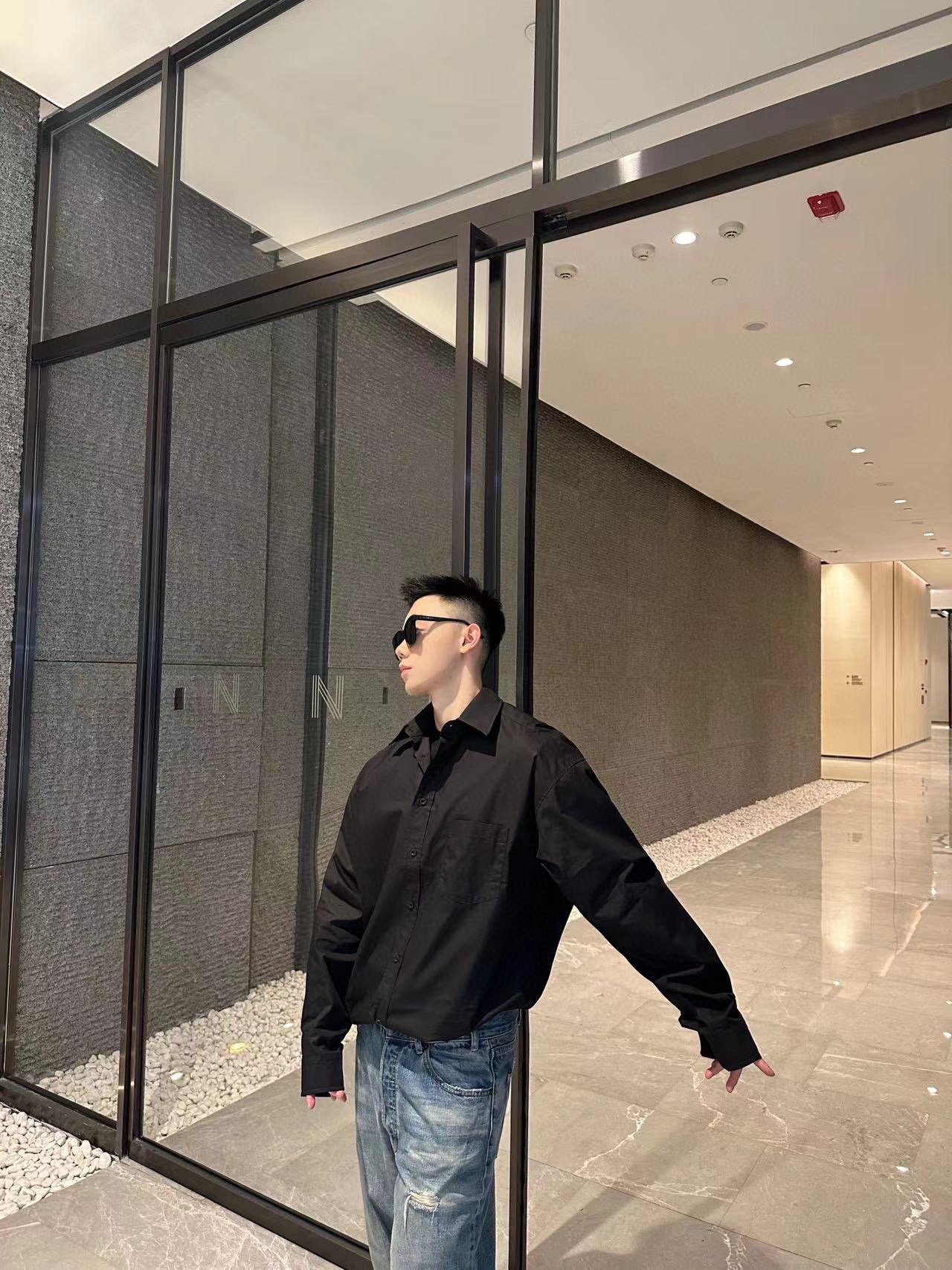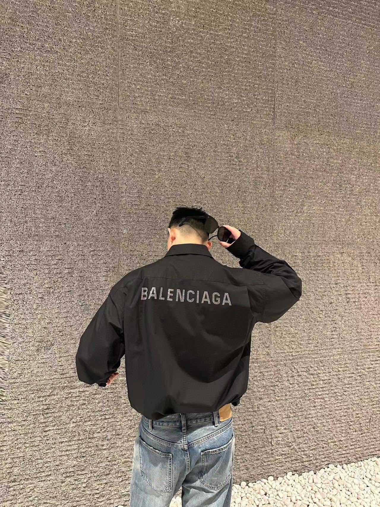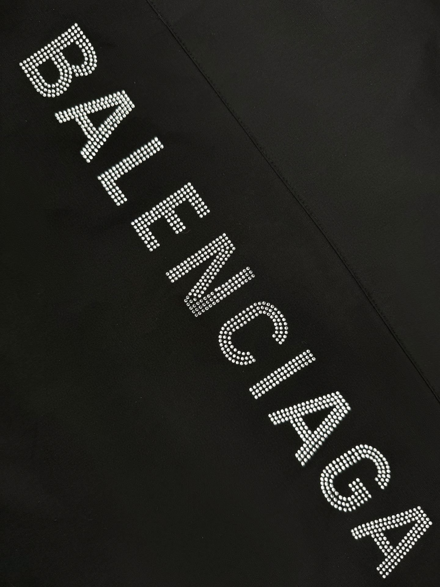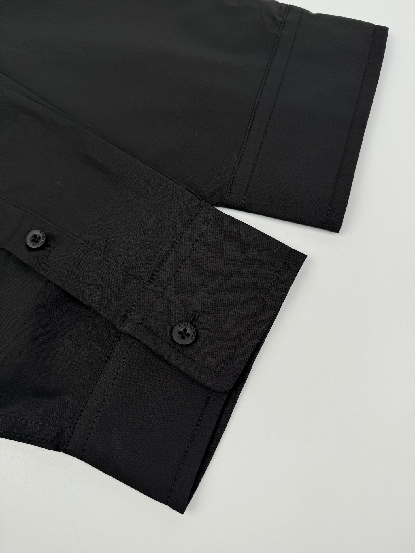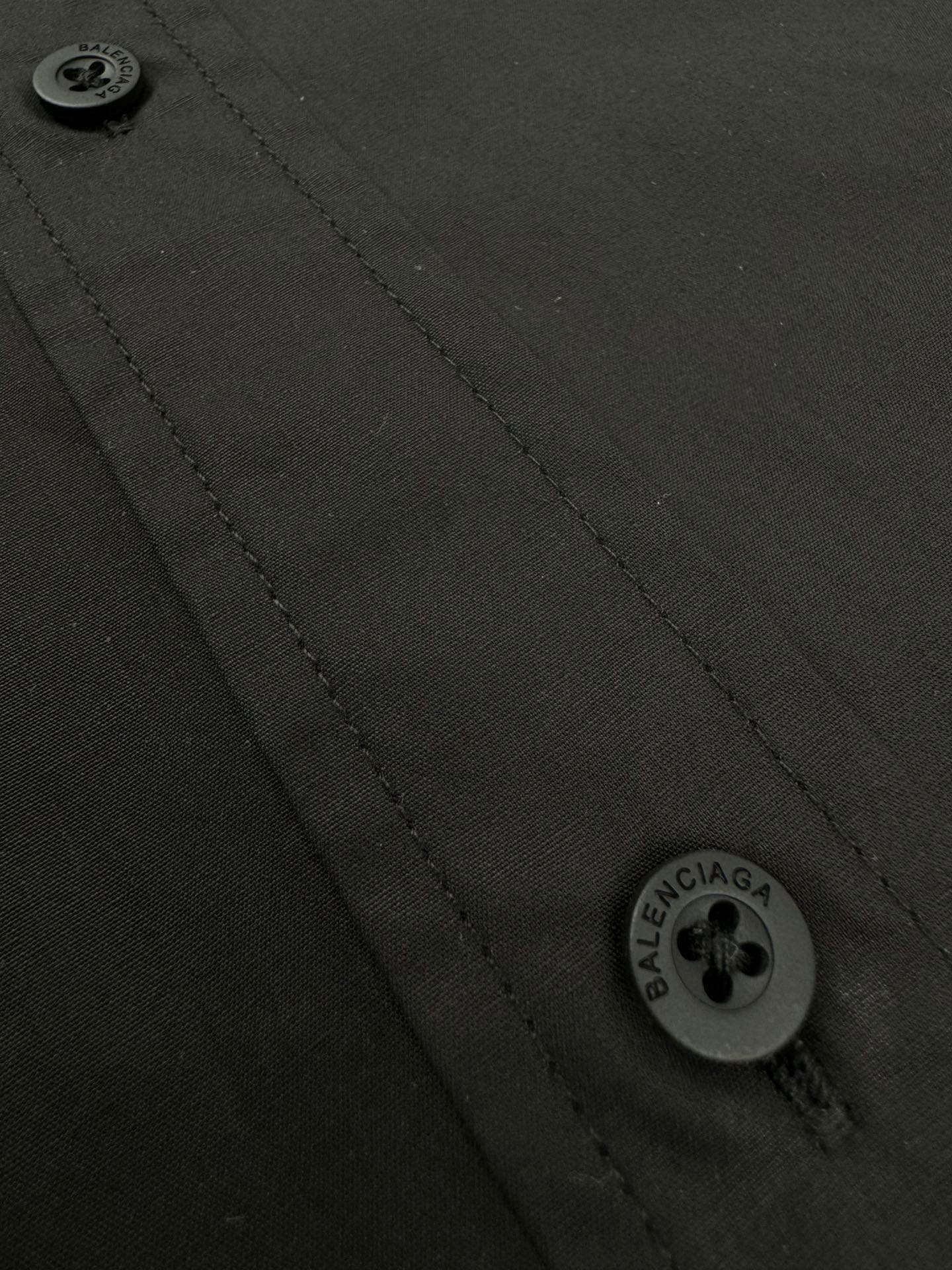 חולצת שחורה שחורה מסגנון Balenciagaa, מתאימה למודה מעוצבת ומסגננת.