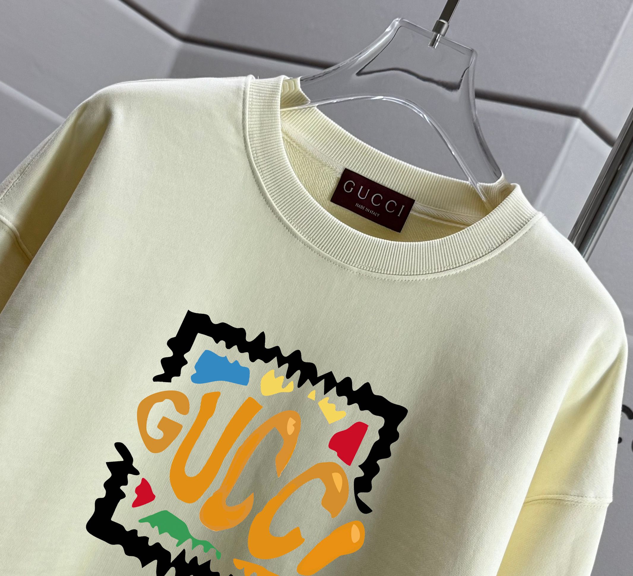 חולצת Gucci בסגנון מובטח וכיפי עם דפס לוגו בצבעוניות מקוריות. מתאים מותאמים לנוחות
