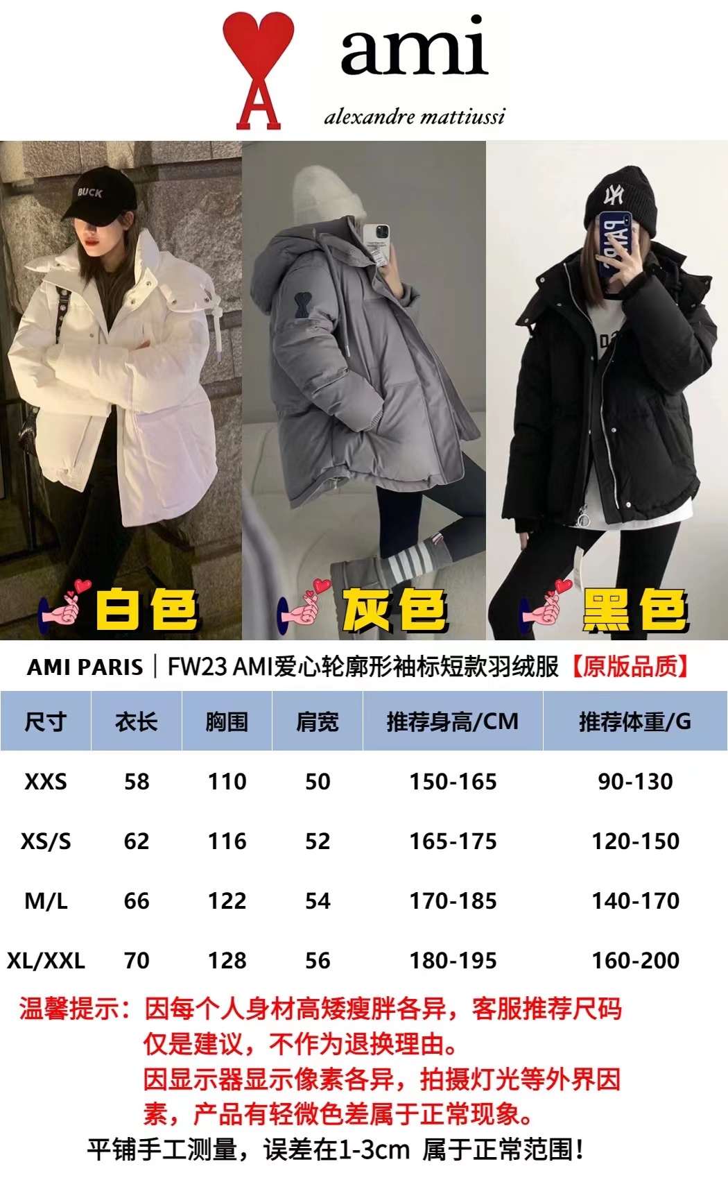 Ami Paris מעילית פוך נפוחה לגו לב בחורף חורף קצר