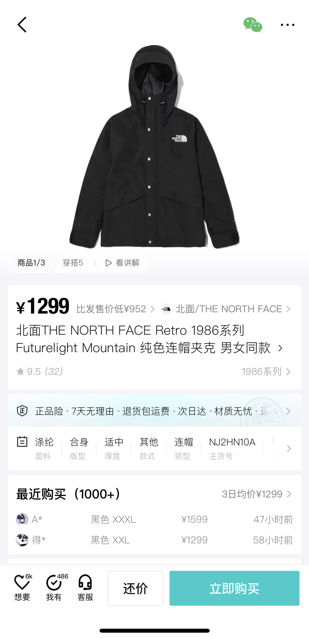 מעיל נוחות The North Face, מתאים Futurelight מתקדמים, חיווי ונוחות בסגנון רטרו מ-1986. מתים לשימוש ביניונים.