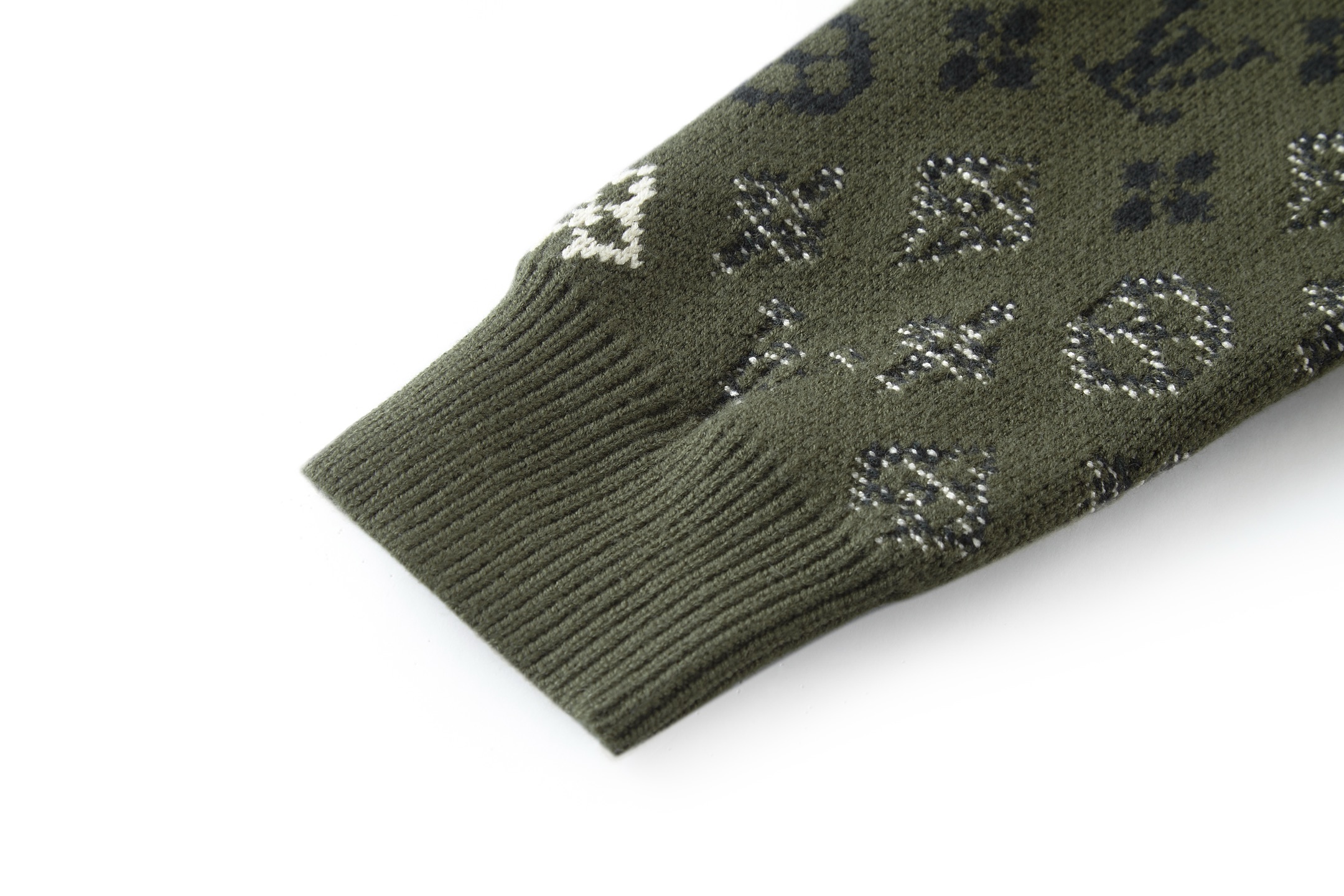 סוודר לואי ויטון ירוק עם דוגמת מונוגרמה – בד חם ונעים לעונת החורף