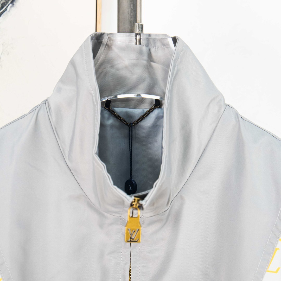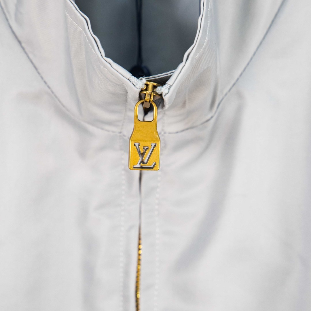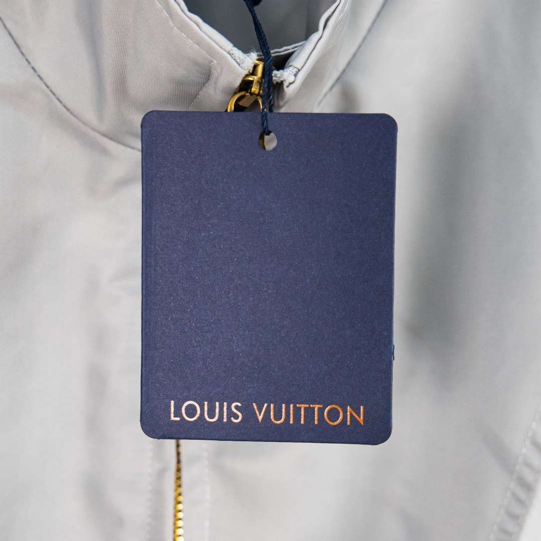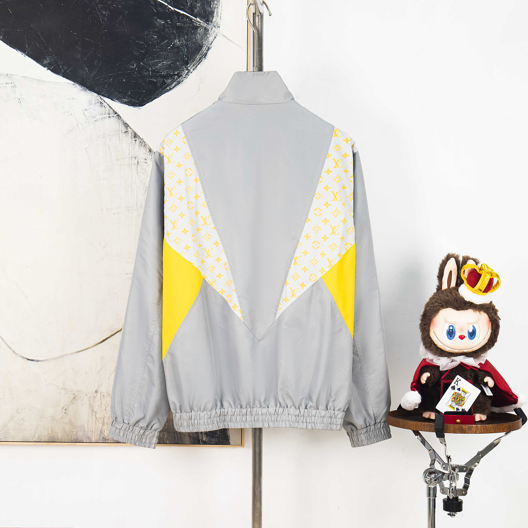 מעיל ג’קט ספורטיבי יוקרתי של לואי ויטון, קולקציית 2025, עם הדפס לוגו אייקוני. מושלם לגברים ולנשים.