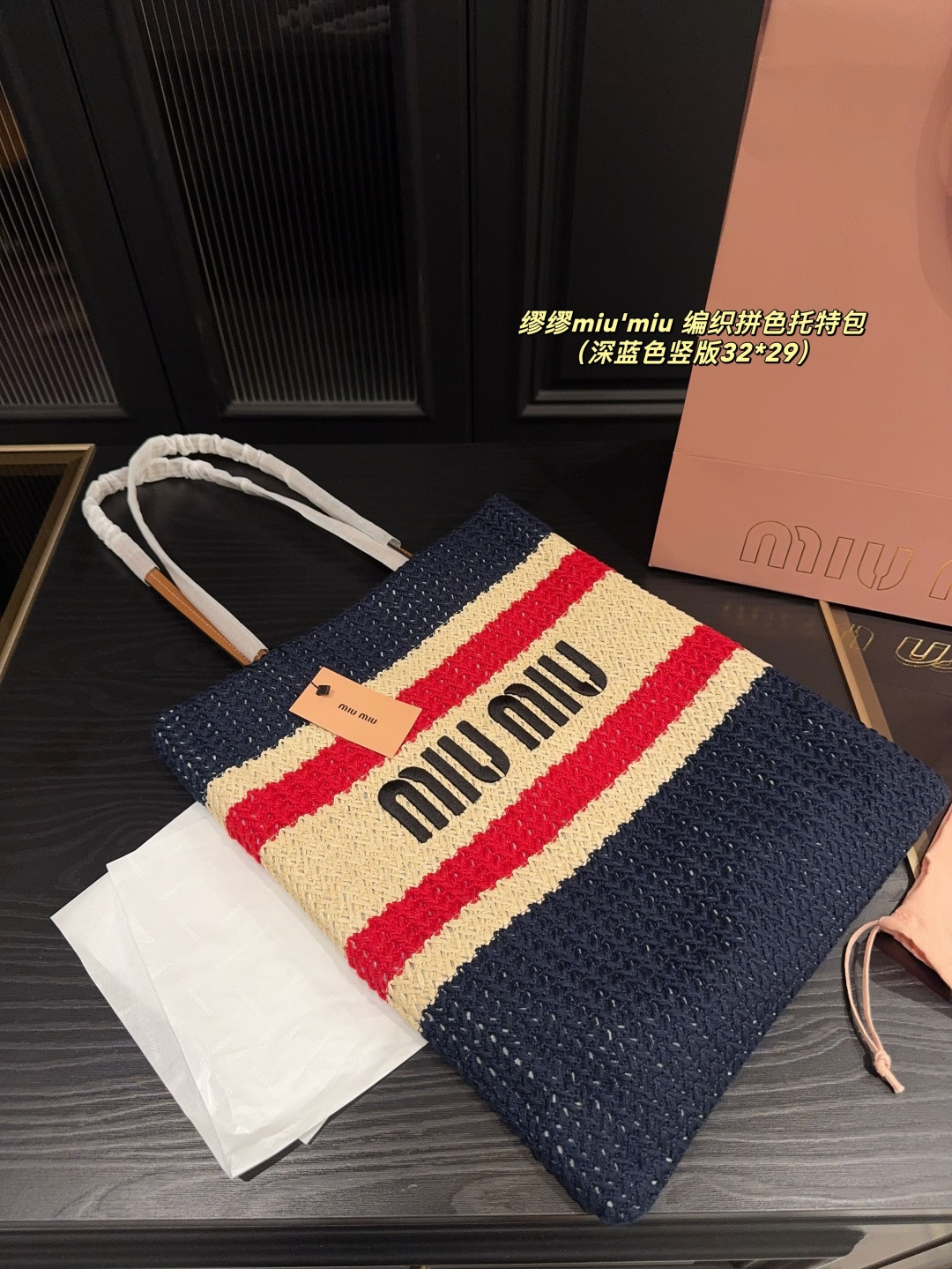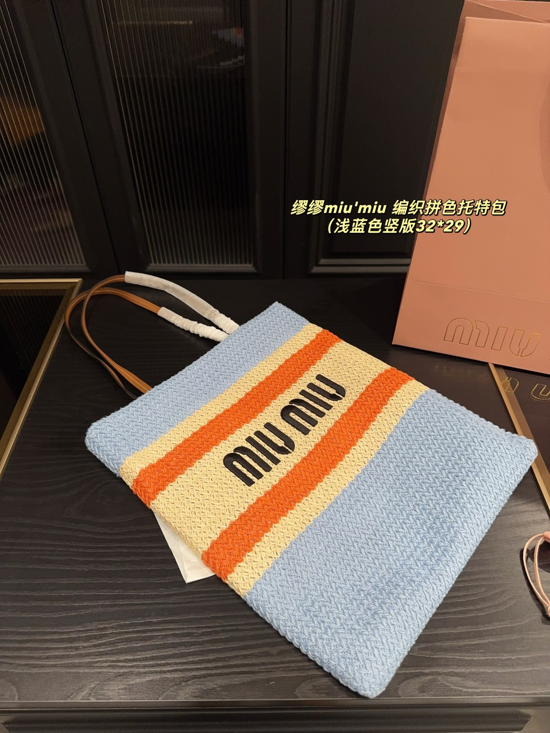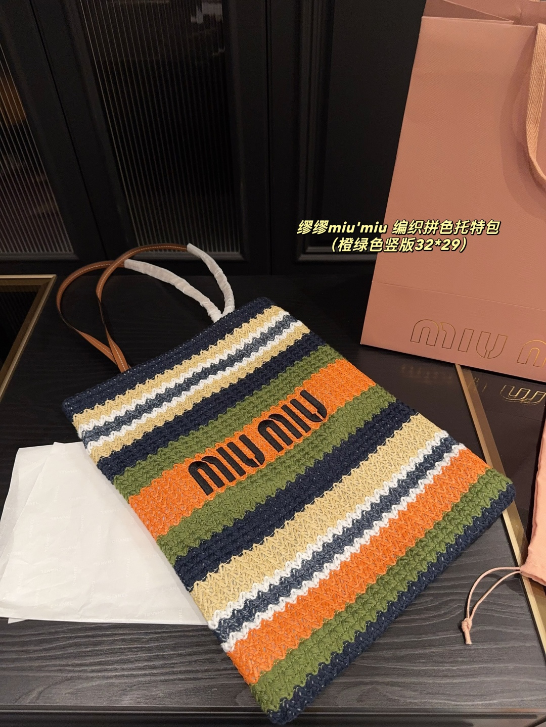 תיק קלועי בסגנון אופנתי מרשים Miu Miu. נשזר לקיץ בסגנון אופנתי במיוחד.