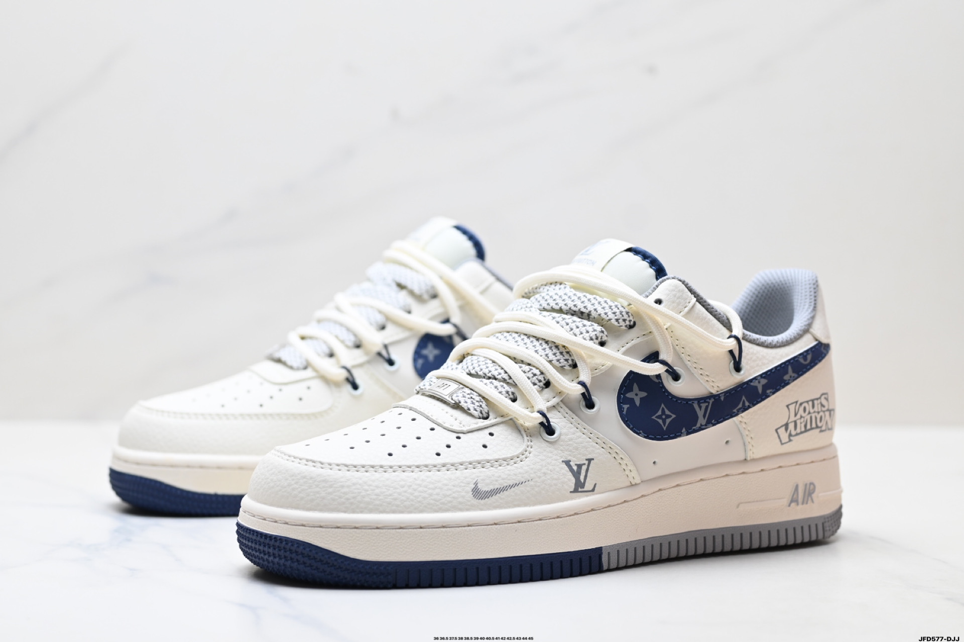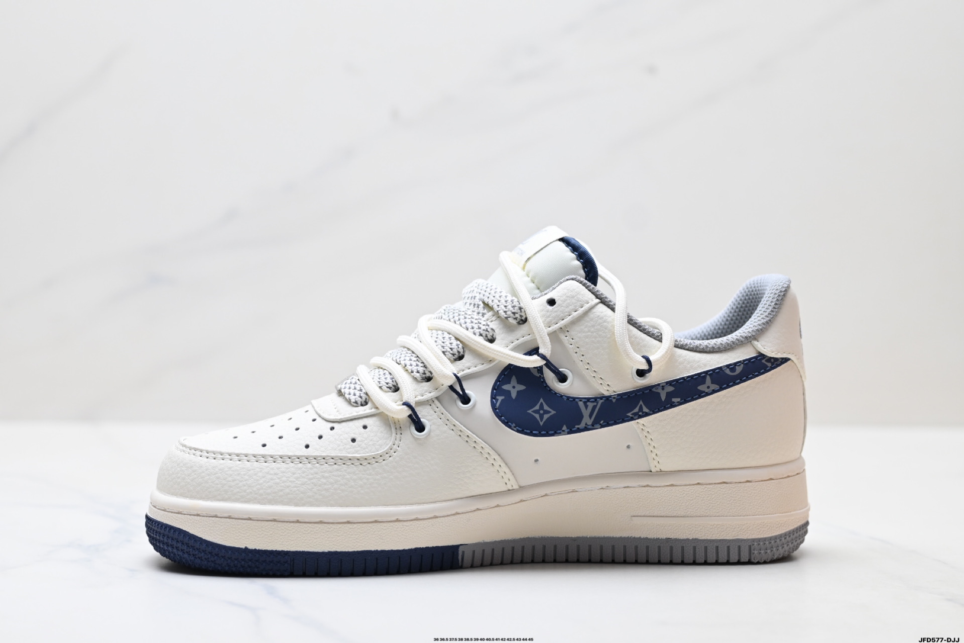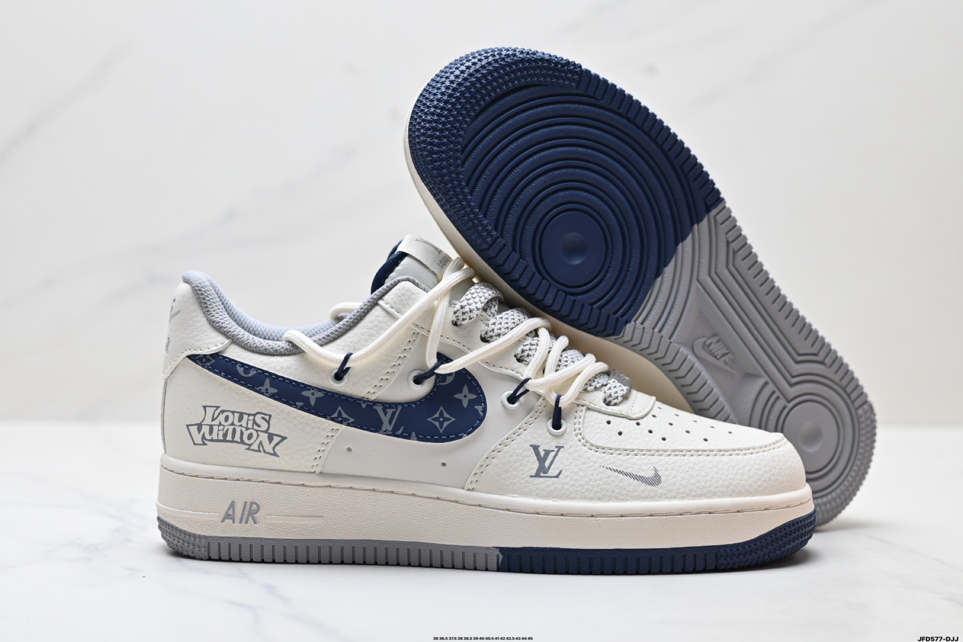 נעלי Nike Air Force 1 ’07 במהדורה מיוחדת בעיצוב Louis Vuitton, המשלבות את המורשת של נייקי עם סגנון היוקרה של לואי ויטון. מהדורה מוגבלת זו מציעה חוויה ייחודית לחובבי אופנה וסניקרס.