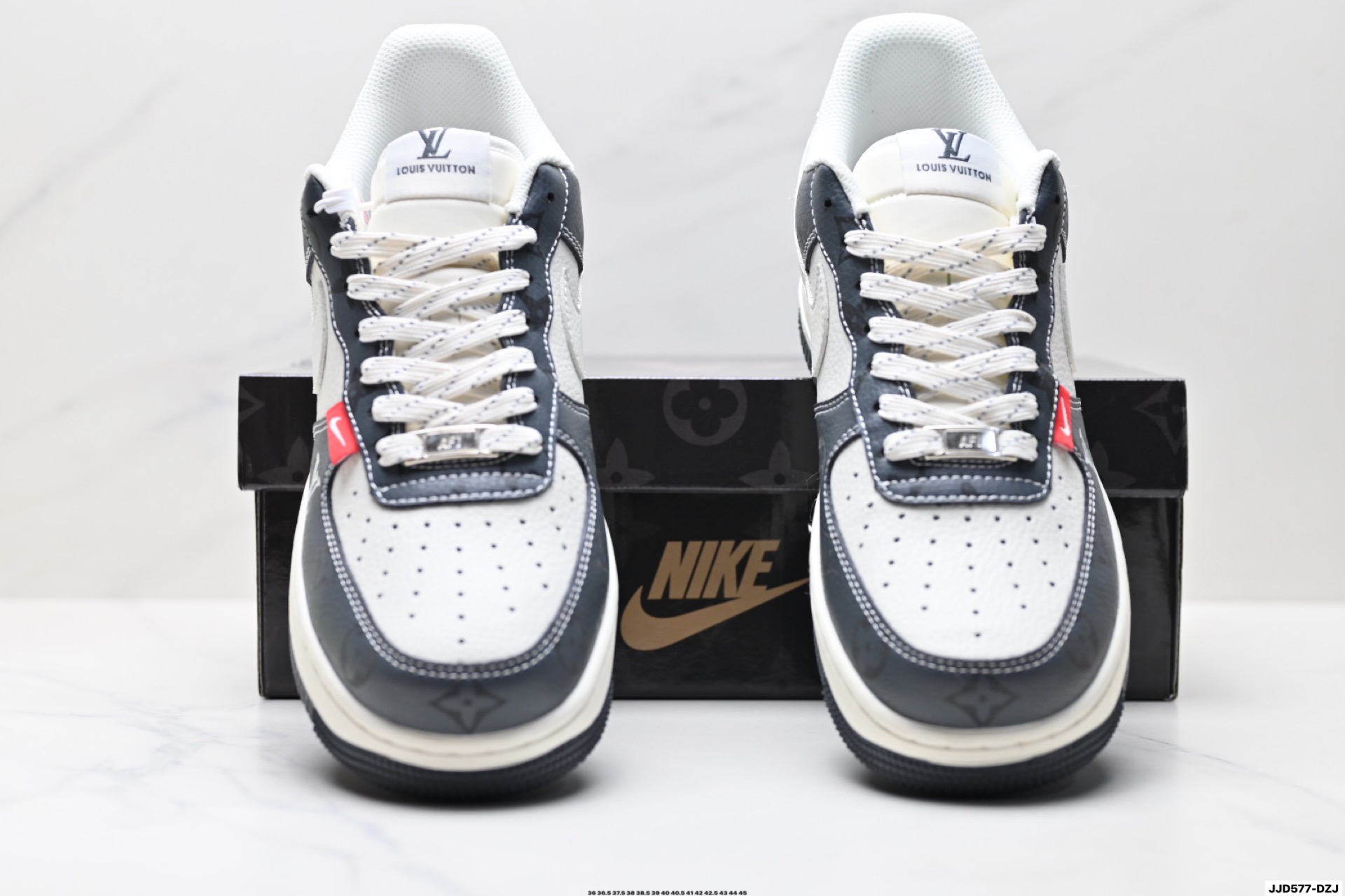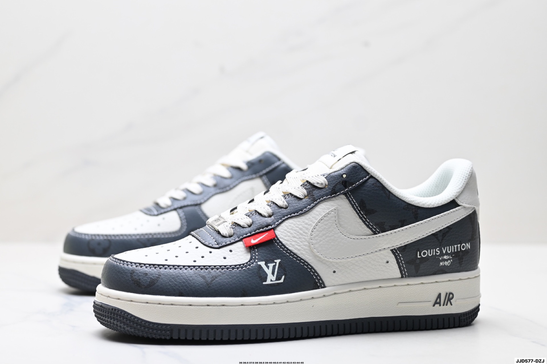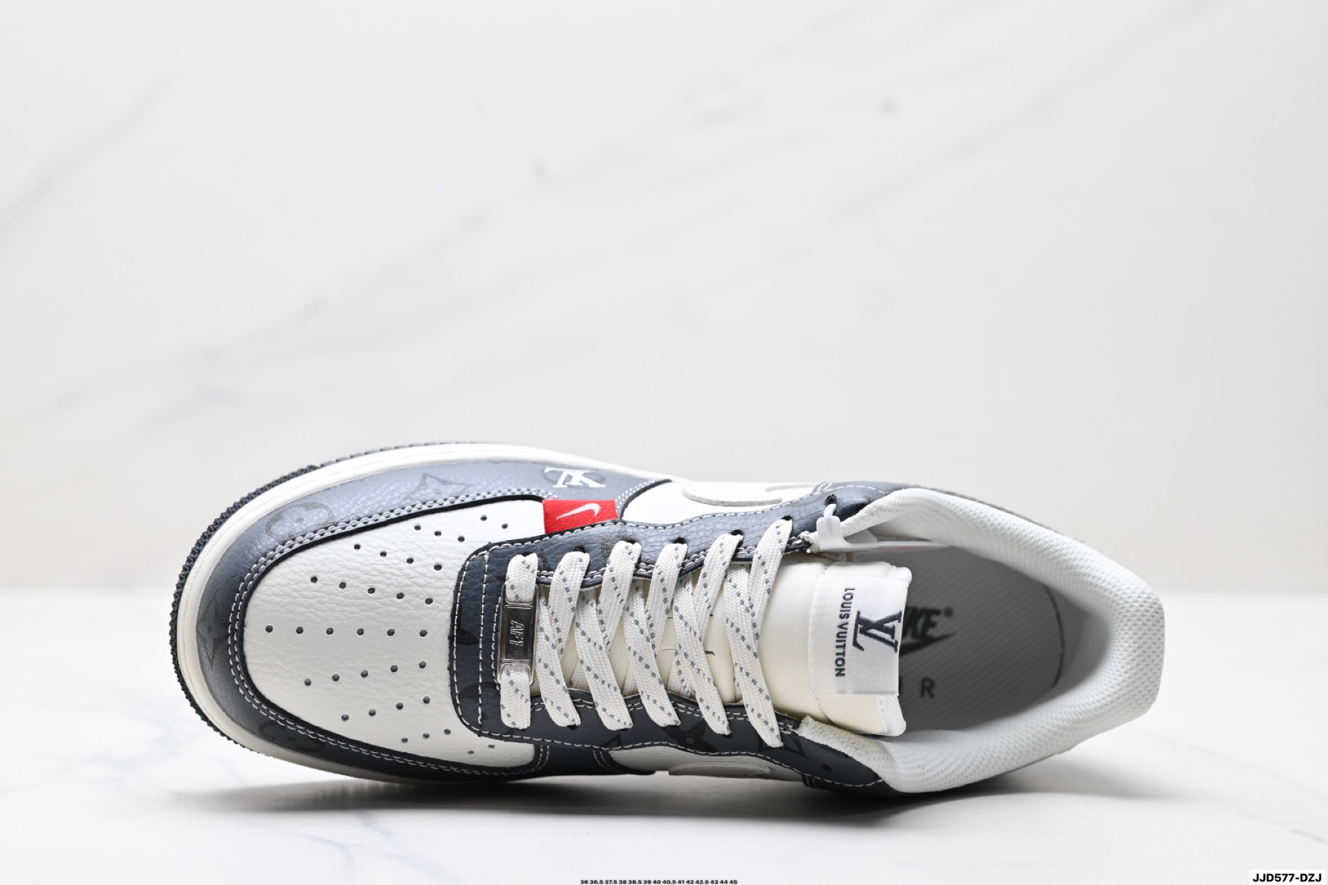 נעלי Nike Air Force 1 בעיצוב מיוחד בשיתוף פעולה עם Louis Vuitton. השילוב בין הנוחות האגדית של נייקי ליוקרה של לואי ויטון יוצר מראה ייחודי ובלתי נשכח.