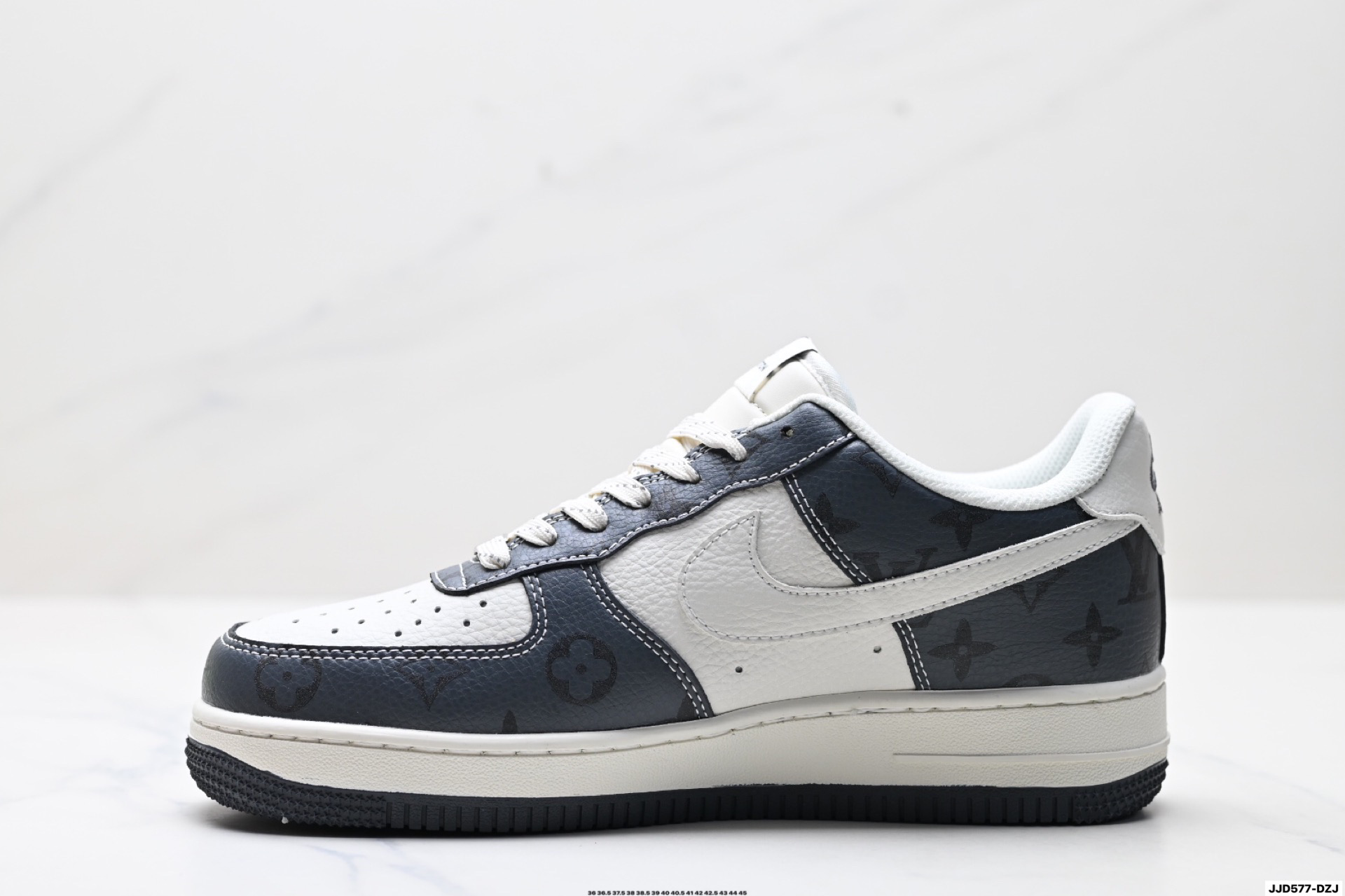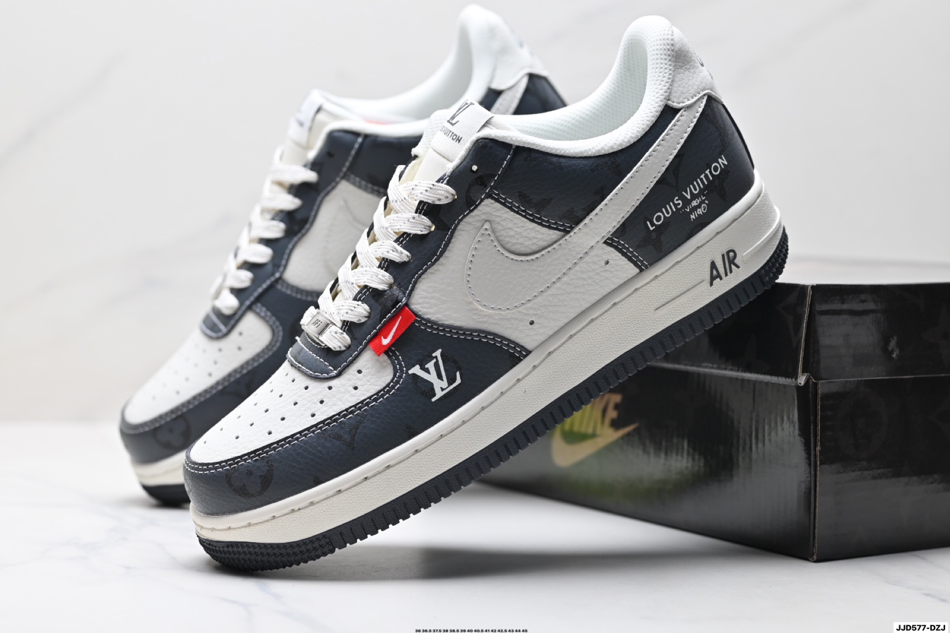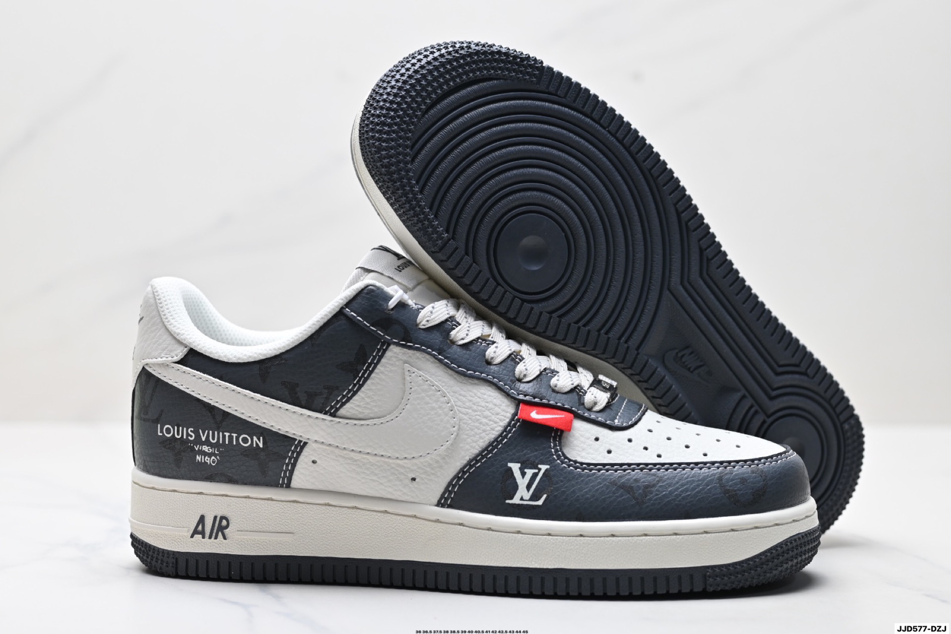 נעלי Nike Air Force 1 בעיצוב מיוחד בשיתוף פעולה עם Louis Vuitton. השילוב בין הנוחות האגדית של נייקי ליוקרה של לואי ויטון יוצר מראה ייחודי ובלתי נשכח.