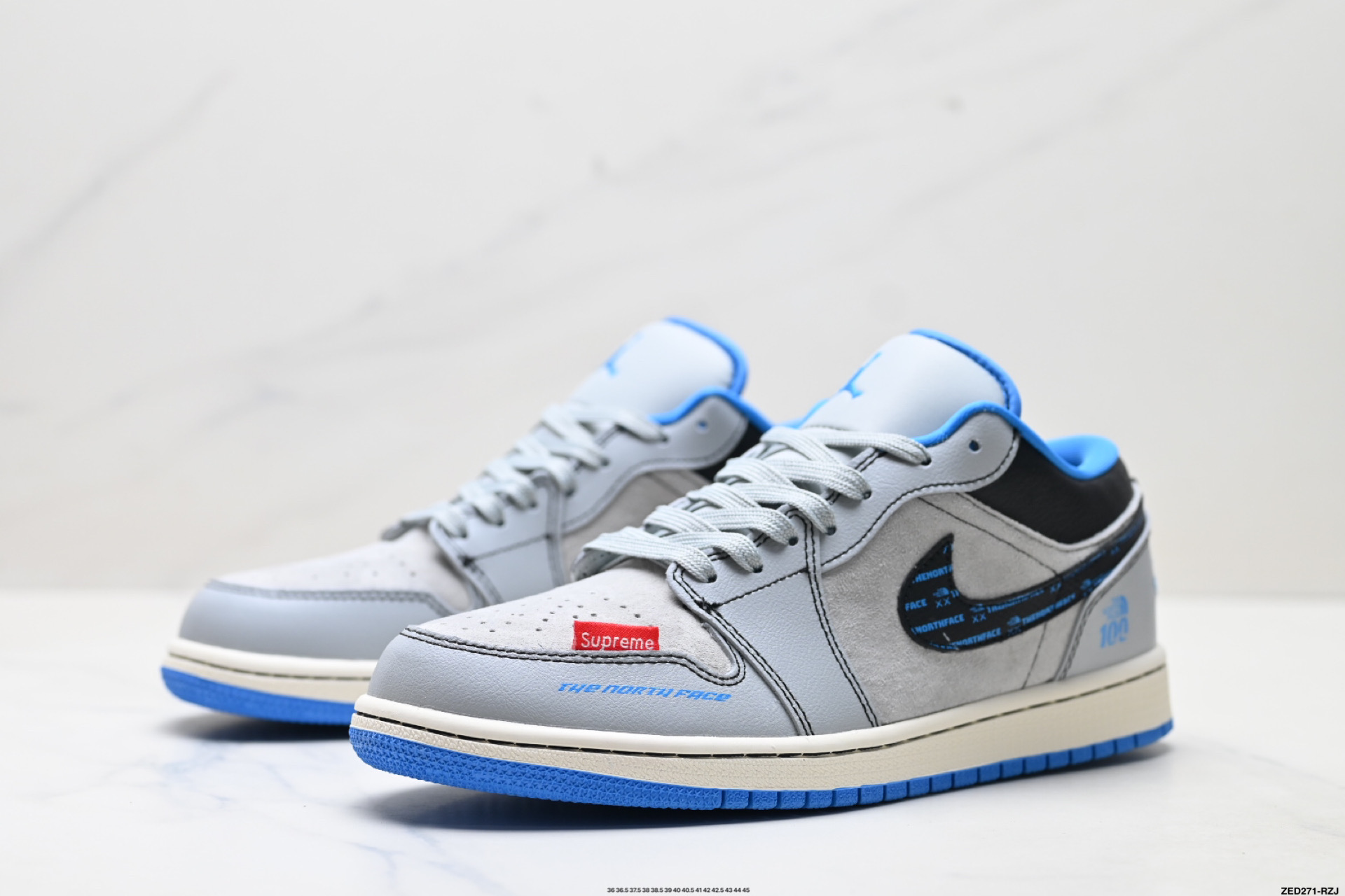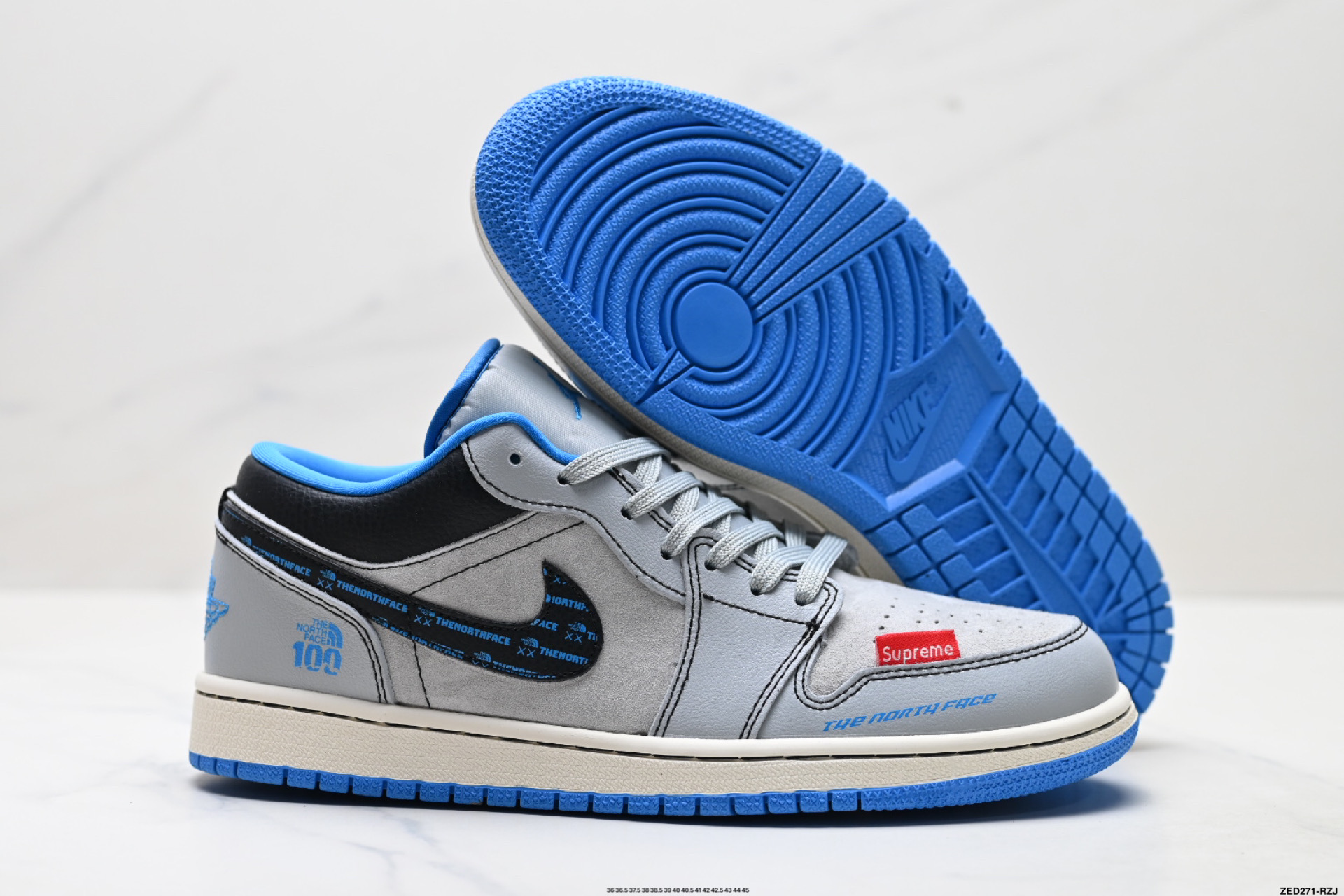נעלי Nike Air Jordan 1 Low בעיצוב מיוחד המשולב עם סופרים ונורת’ פייס. שילוב מנצח של סטייל ונוחות.