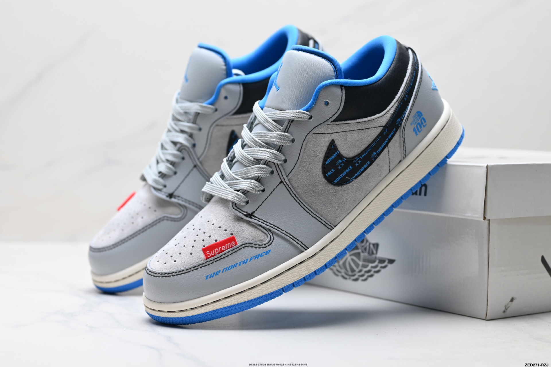 נעלי נייקי אייר ג’ורדן 1 נמוכות בעיצוב ייחודי, המשלב את סופרים ונורת’ פייס. נוחות וסטייל מושלמים.