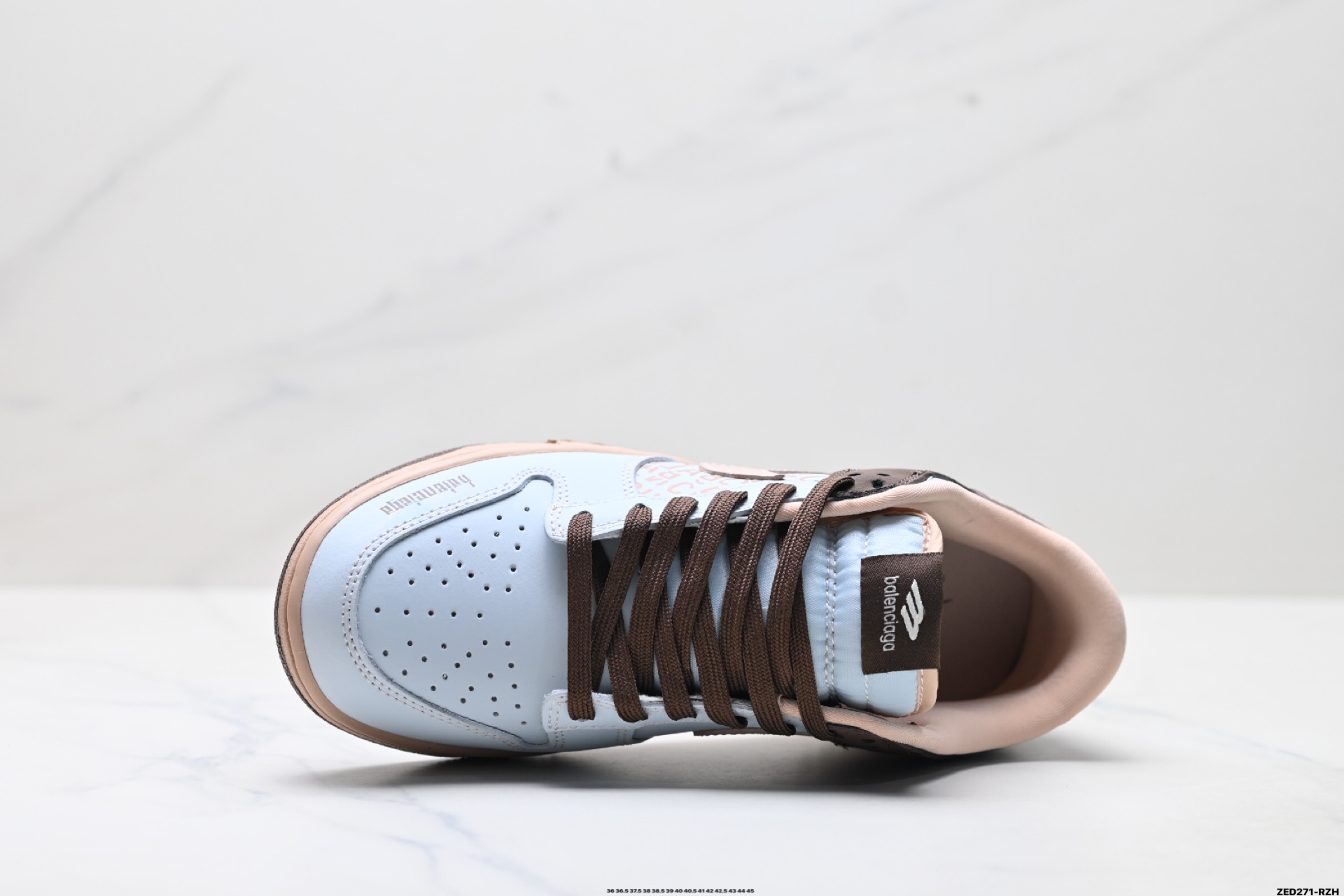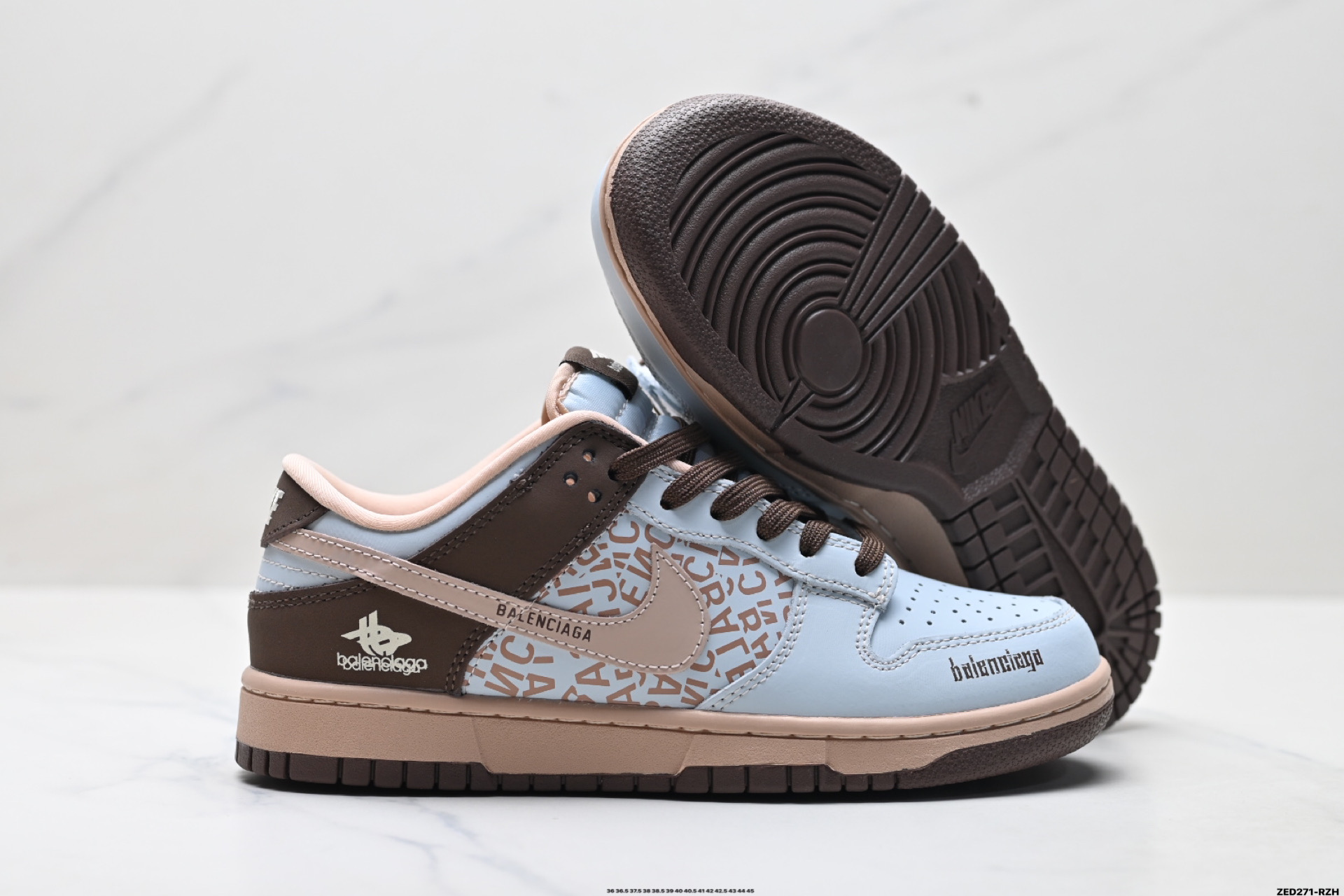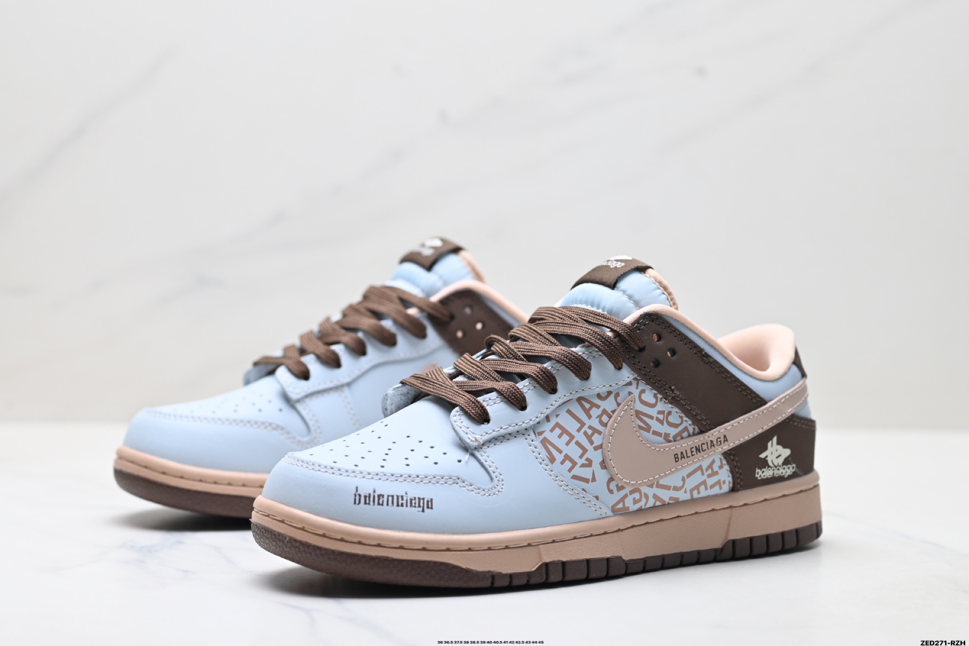 נעלי Nike Dunk Low בעיצוב מותאם אישית עם בלנסיאגה מציגות שילוב ייחודי של אופנת רחוב ויוקרה גבוהה.