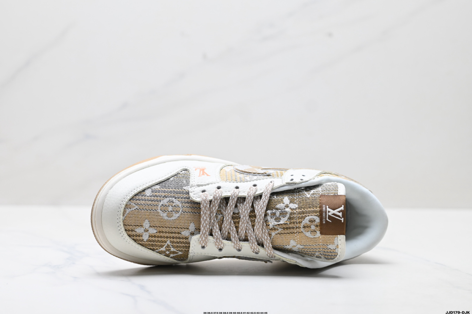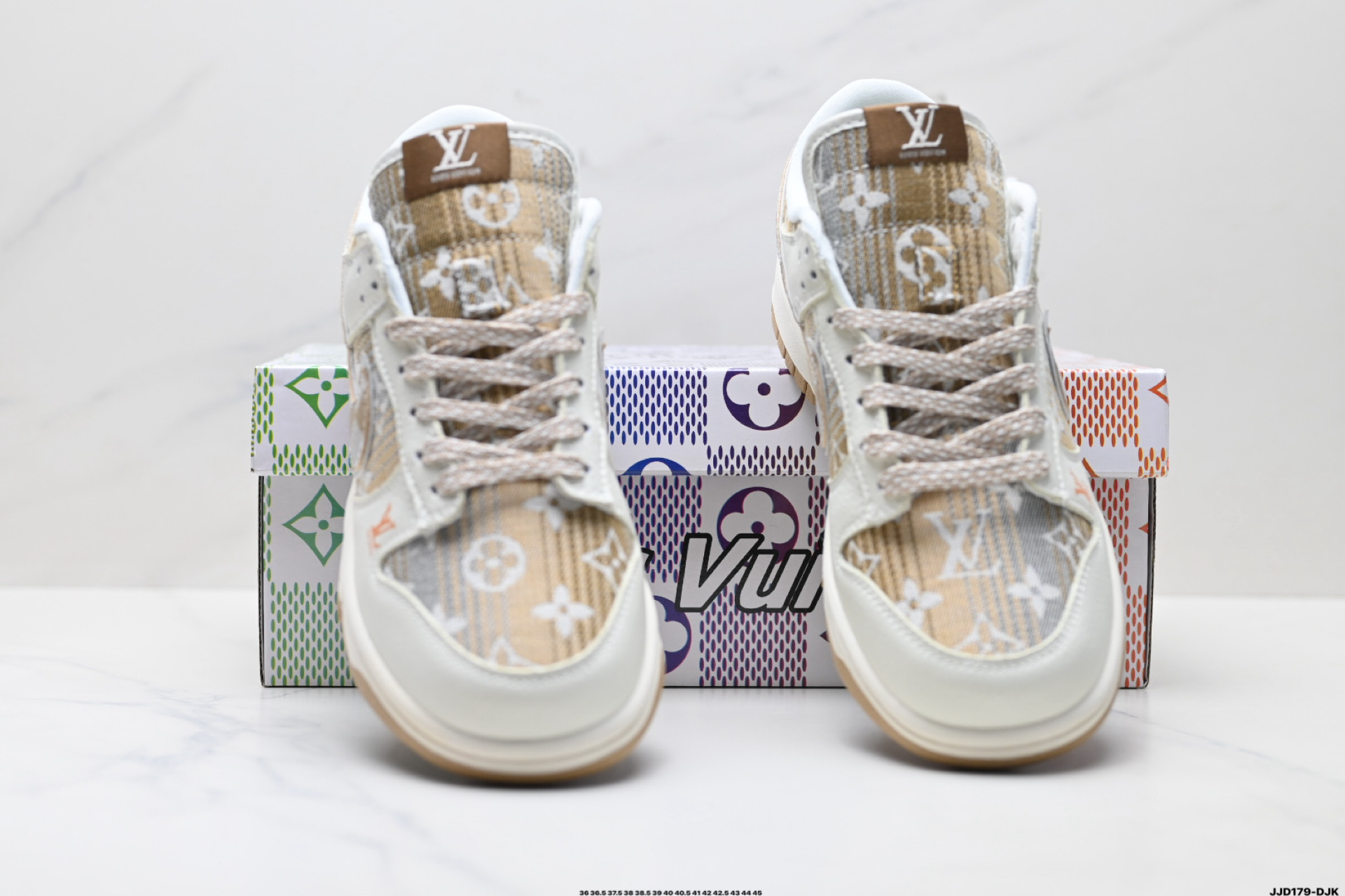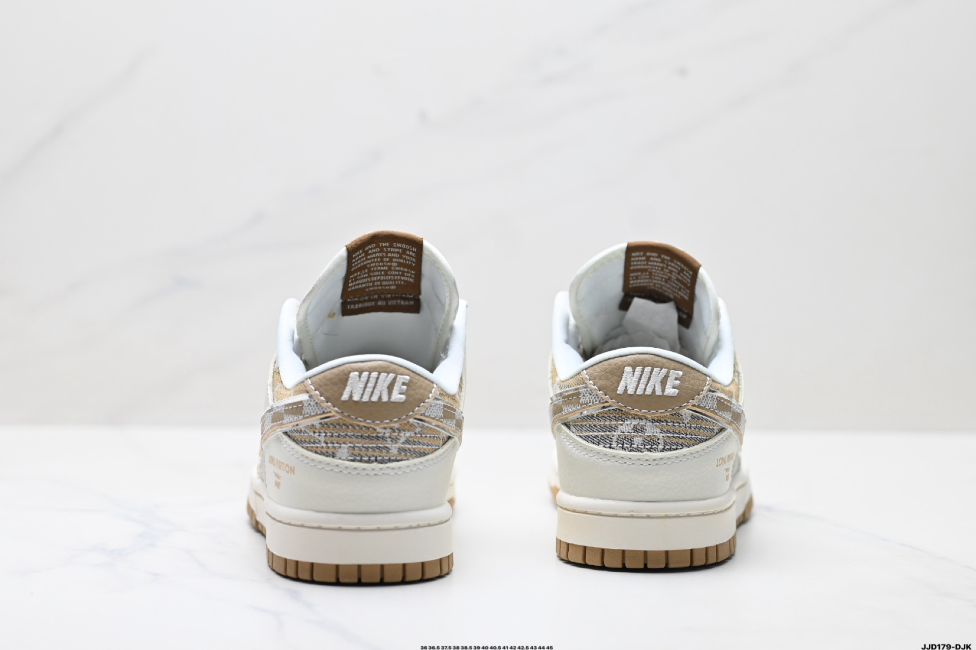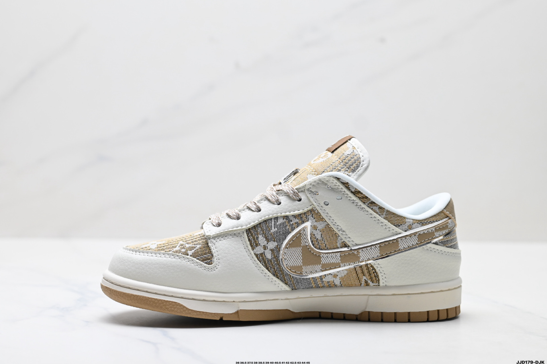 נעלי Nike Dunk Low בעיצוב לואי ויטון, חומרים פרימיום ונוחות מירבית. שילוב מושלם בין אופנת רחוב לעיצוב יוקרתי.