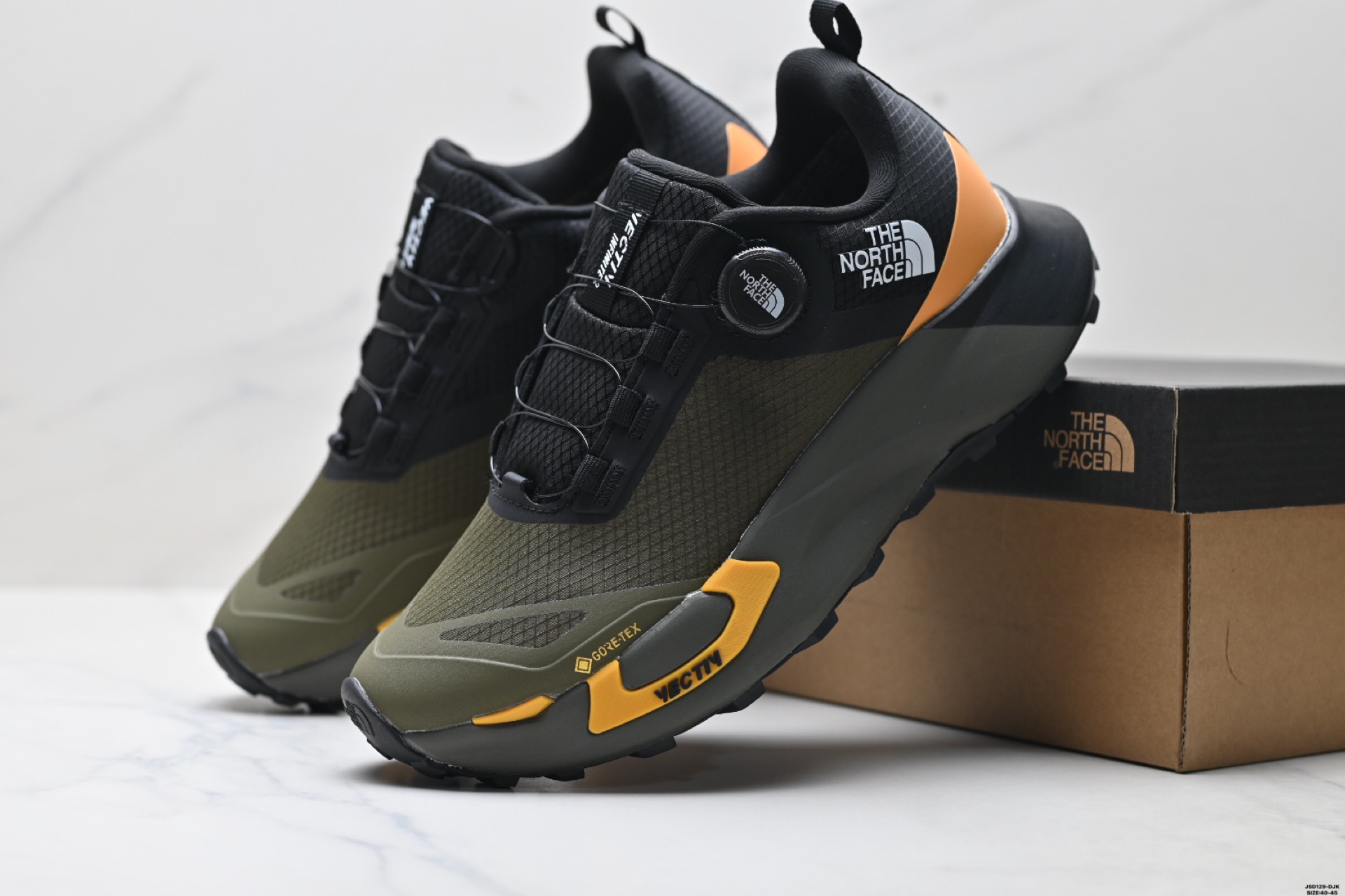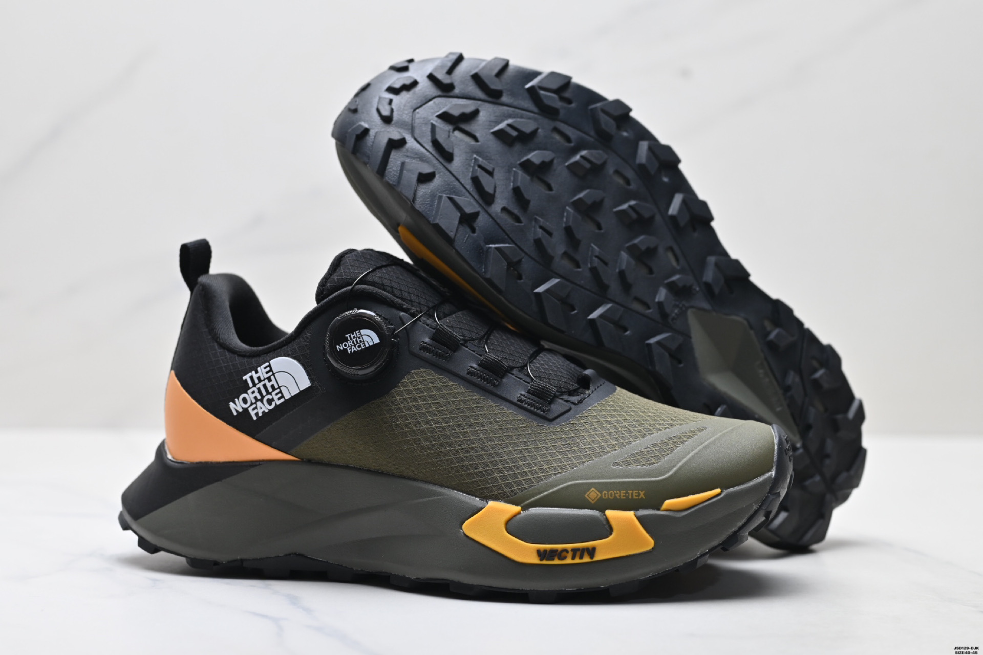 נעלי שטח לגברים של The North Face, עם בולם זעזועים, אחיזה מעולה וגפה נושמת ועמידה למים. אידיאליות לריצות שטח ולטיולים.