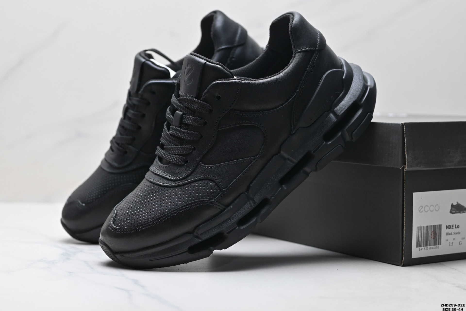 נעלי Ecco Nex Lo עור שחור קלאסיים עם סוליות תחתונות לבישות נוחות ונוחות נועים.