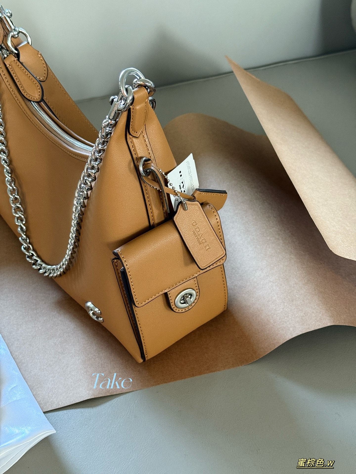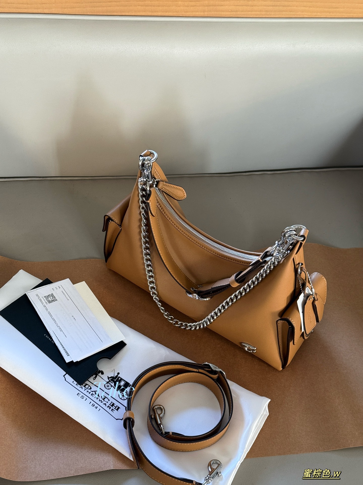 תיק יד נוכחי נשים Coach גוון גף קטן עם רצועות שרשרת מודרנית