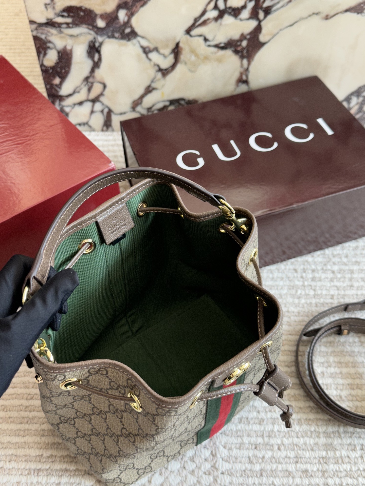 תיק מיני Gucci מדגם קלאסי עם סריכת שרר אופנה ומסוגנת