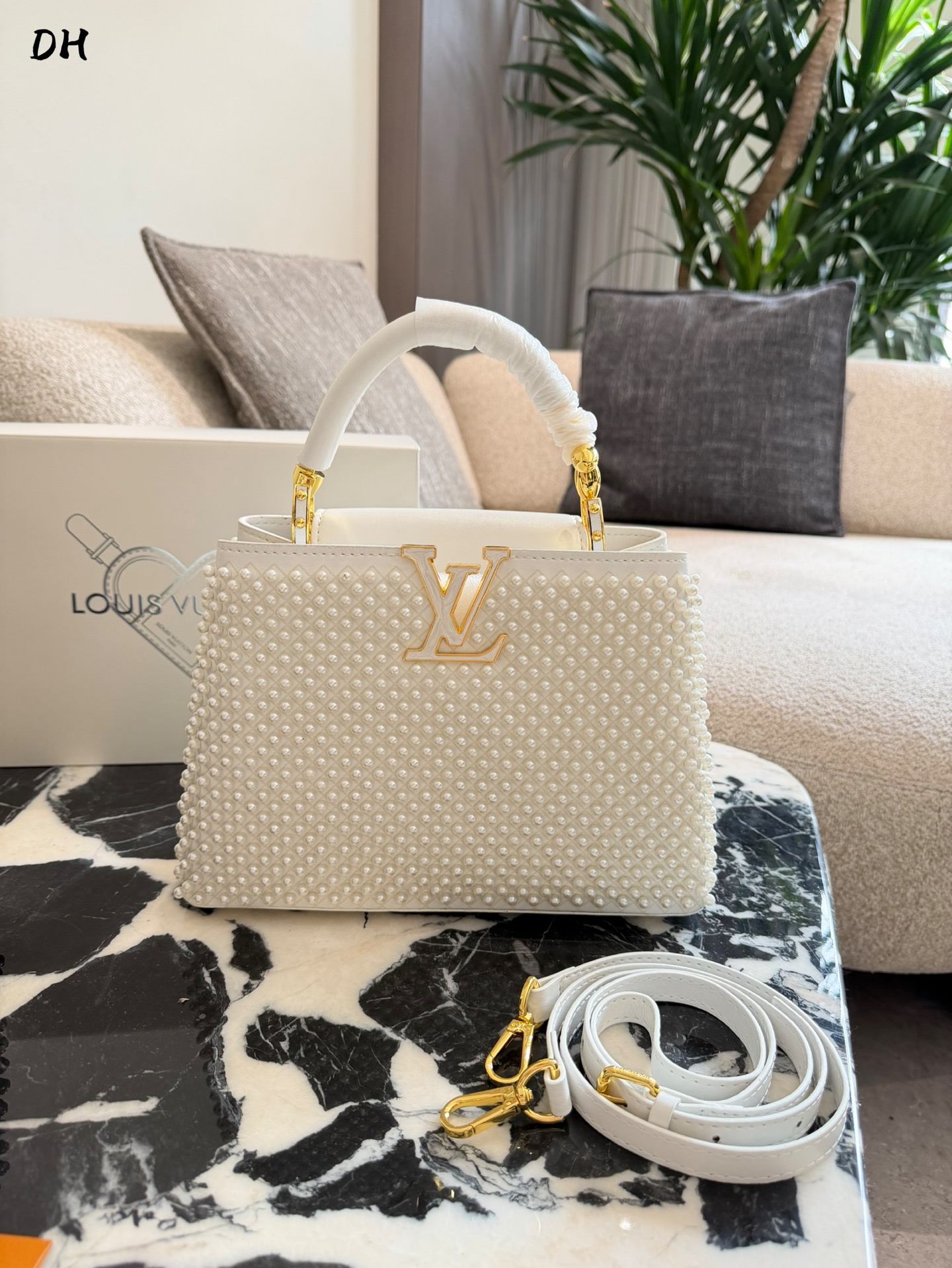 תיק Louis Vuitton קאפוסין מאופן ומסודר. עבודת סטיל פריזאי ושיקי לכל אירוע.