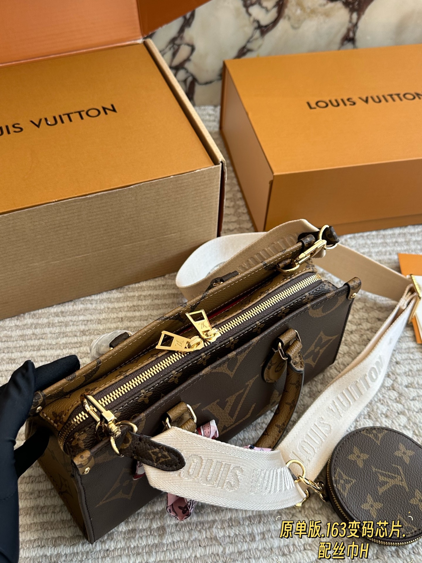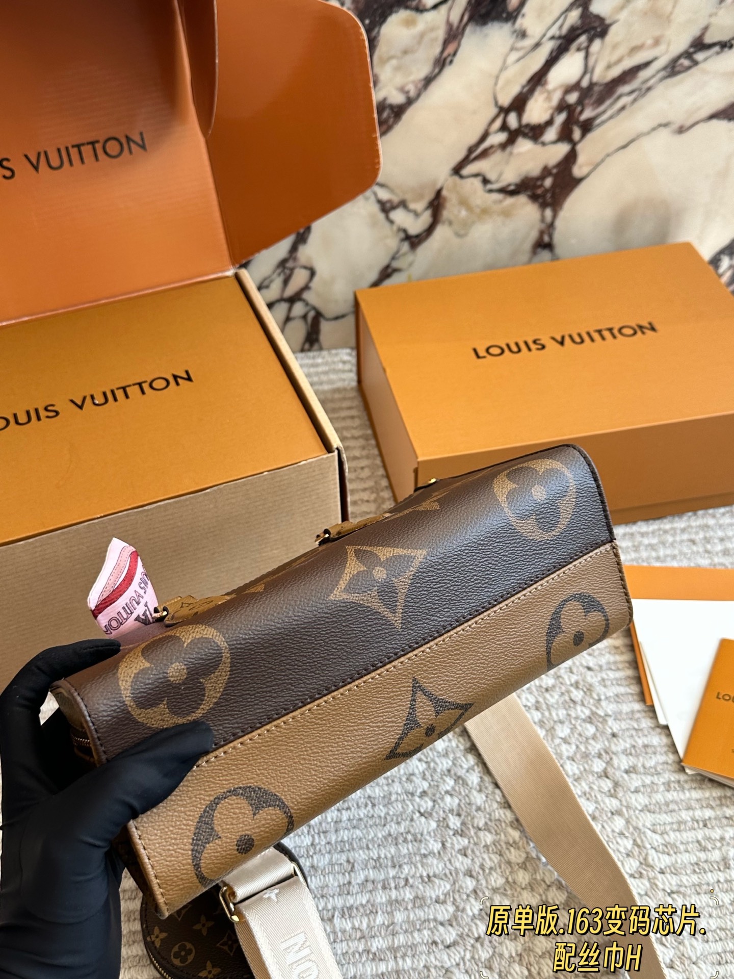 תיק יד קטן של לואי ויטון Onthego בעיצוב קלאסי עם רצועת כתף ארוכה